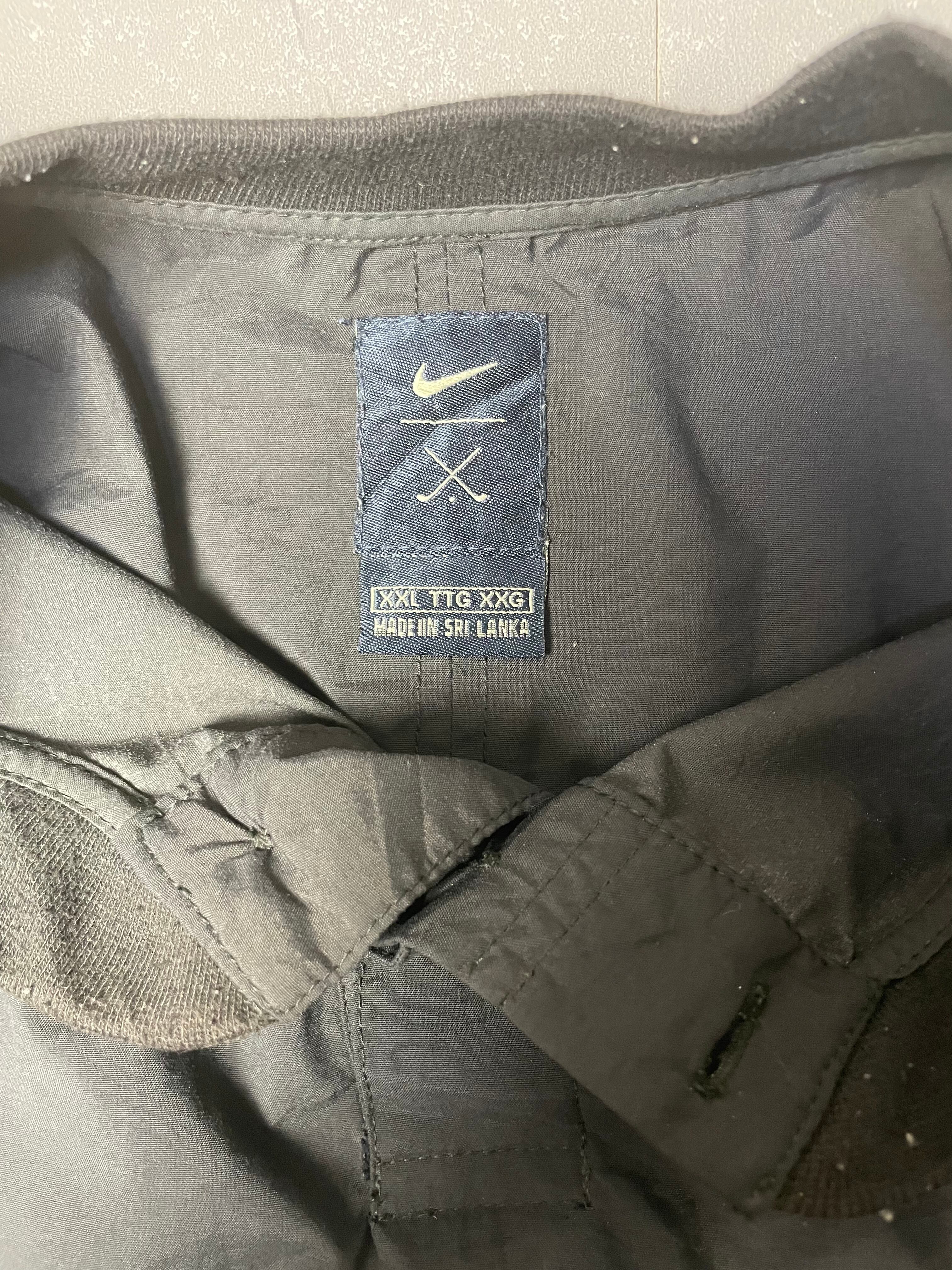 90年代 NIKE ナイキ スウォッシュ フロントロゴ Vネック ウォームアッププルオーバー メンズL 古着 90s ビンテージ ヴィンテージ ナイロンジャケット ブラック 黒色 【ナイロンジャケット】