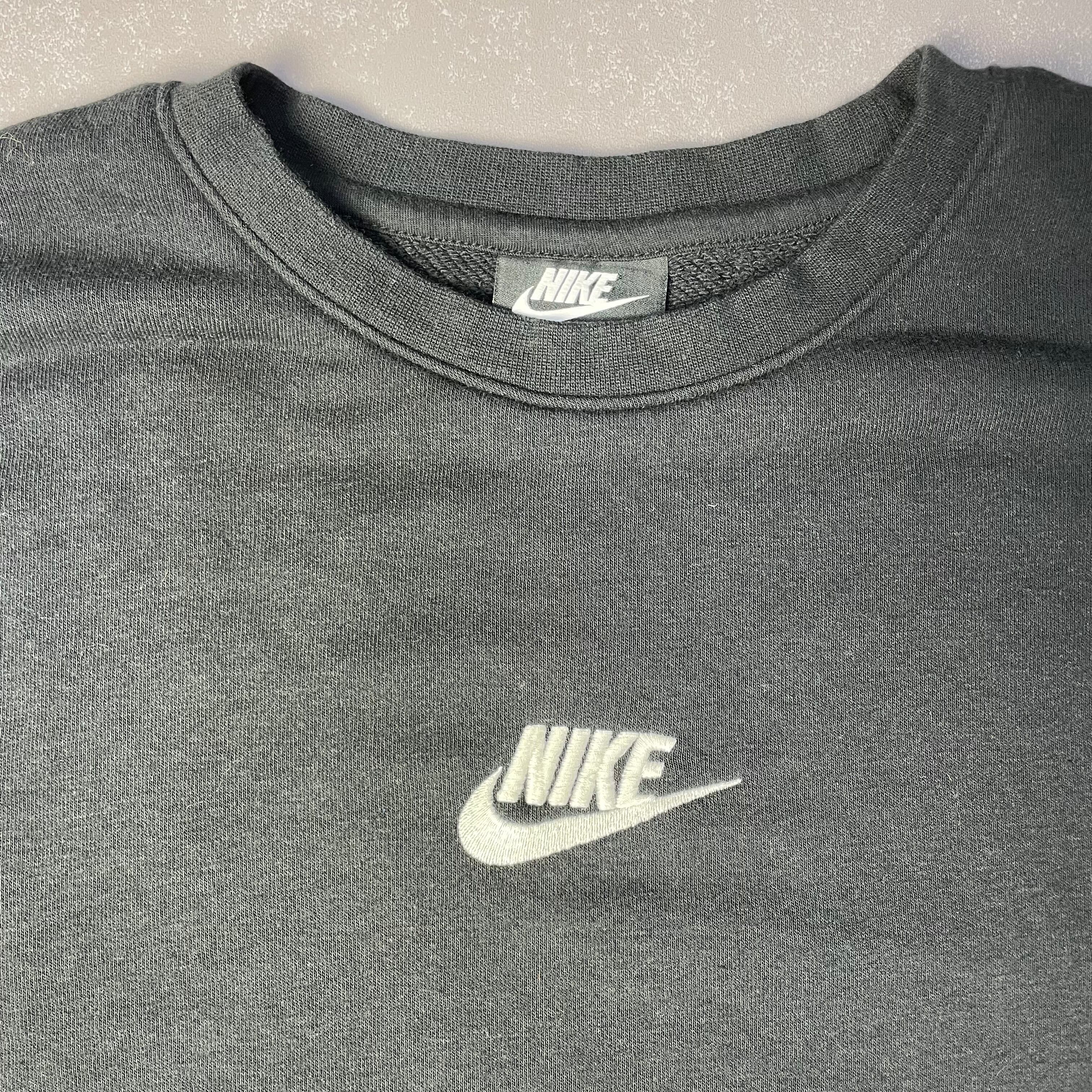 ■ NIKE ナイキ ワンポイントロゴ スウォッシュ 刺繍 スウェットシャツ 両面 メンズS ブラック 古着 【スウェット】