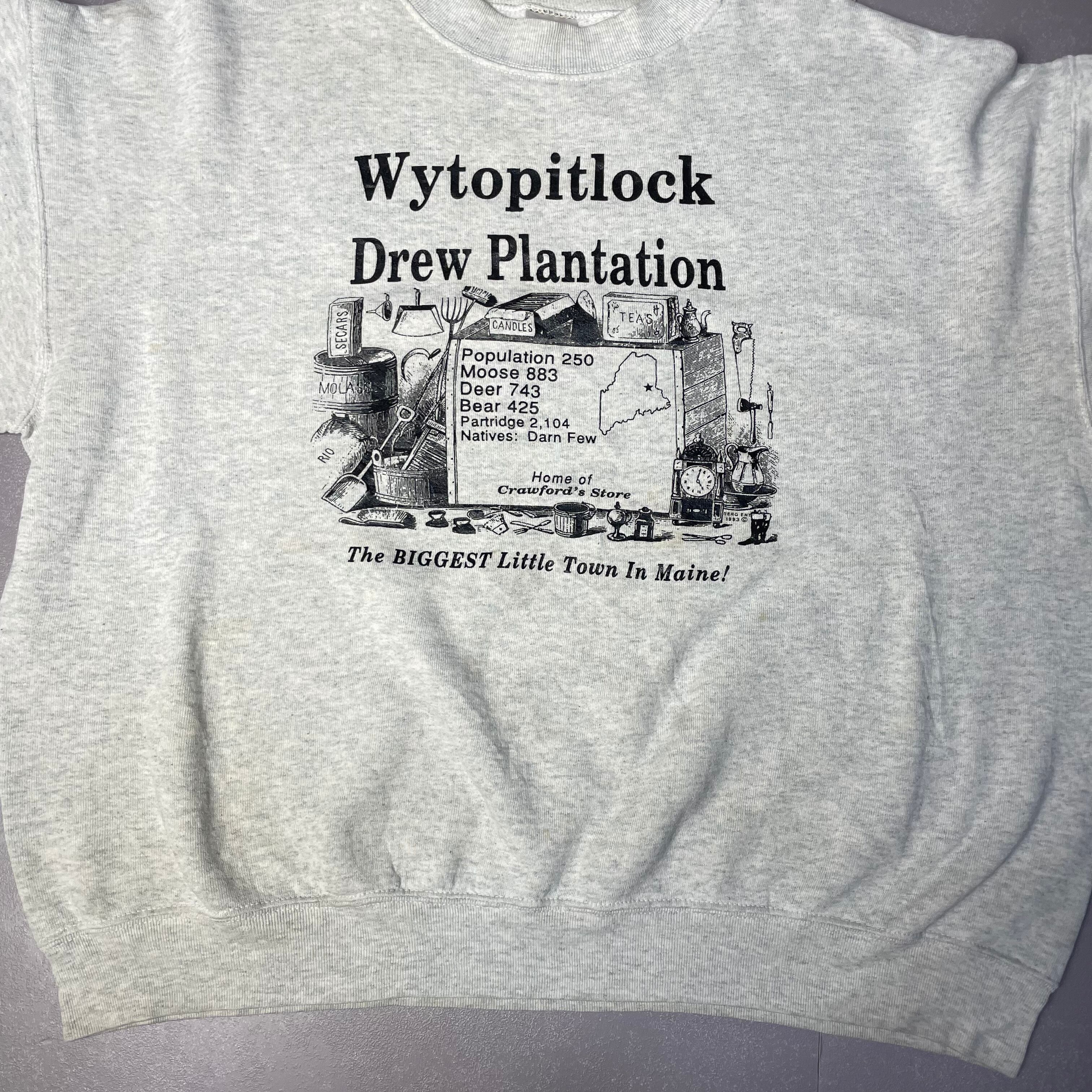 ■90年代 フルーツオブザルーム プリント スウェットシャツ メンズXL 古着 FRUIT OF THE LOOM BEST トレーナー ライトグレー オートミール 90S ビンテージ ヴィンテージ
