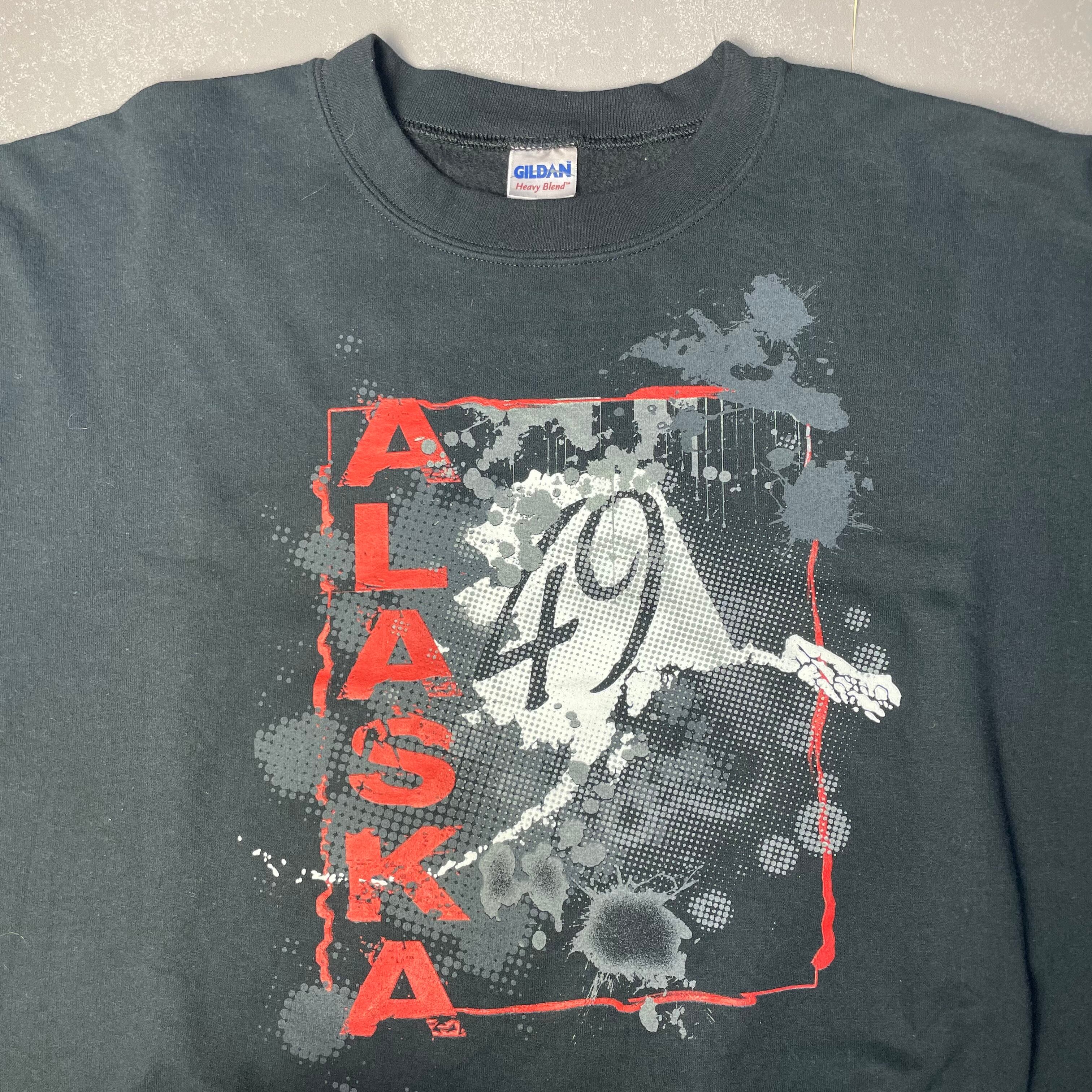 ■ビッグサイズ アラスカ州 49 1959 プリント スウェットシャツ メンズL 古着 トレーナー ブラック 黒色【スウェット】