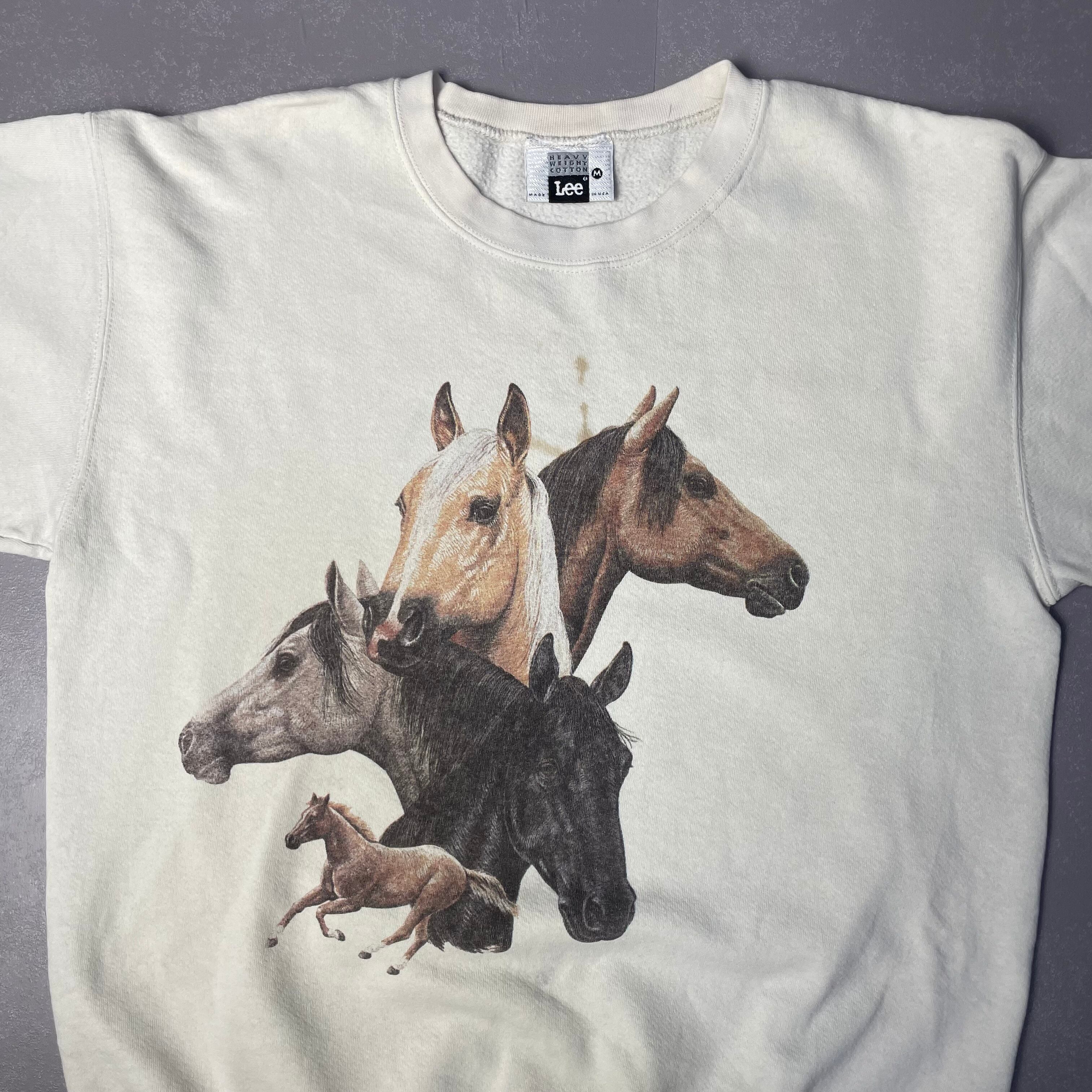 90年代 USA製 Lee リー アニマル プリント スウェットシャツ メンズM 古着 プルオーバー トレーナー 90S ヴィンテージ ビンテージ ホワイト グレー 白色【トレーナー】