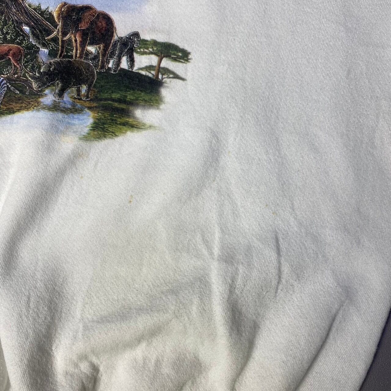 ■90年代 Walt Disney World ディズニー アニマルプリントスウェット トレーナー メンズL相当 90s ヴィンテージ ビンテージ 両面プリント DISNEY ホワイト 白色 【スウェット】