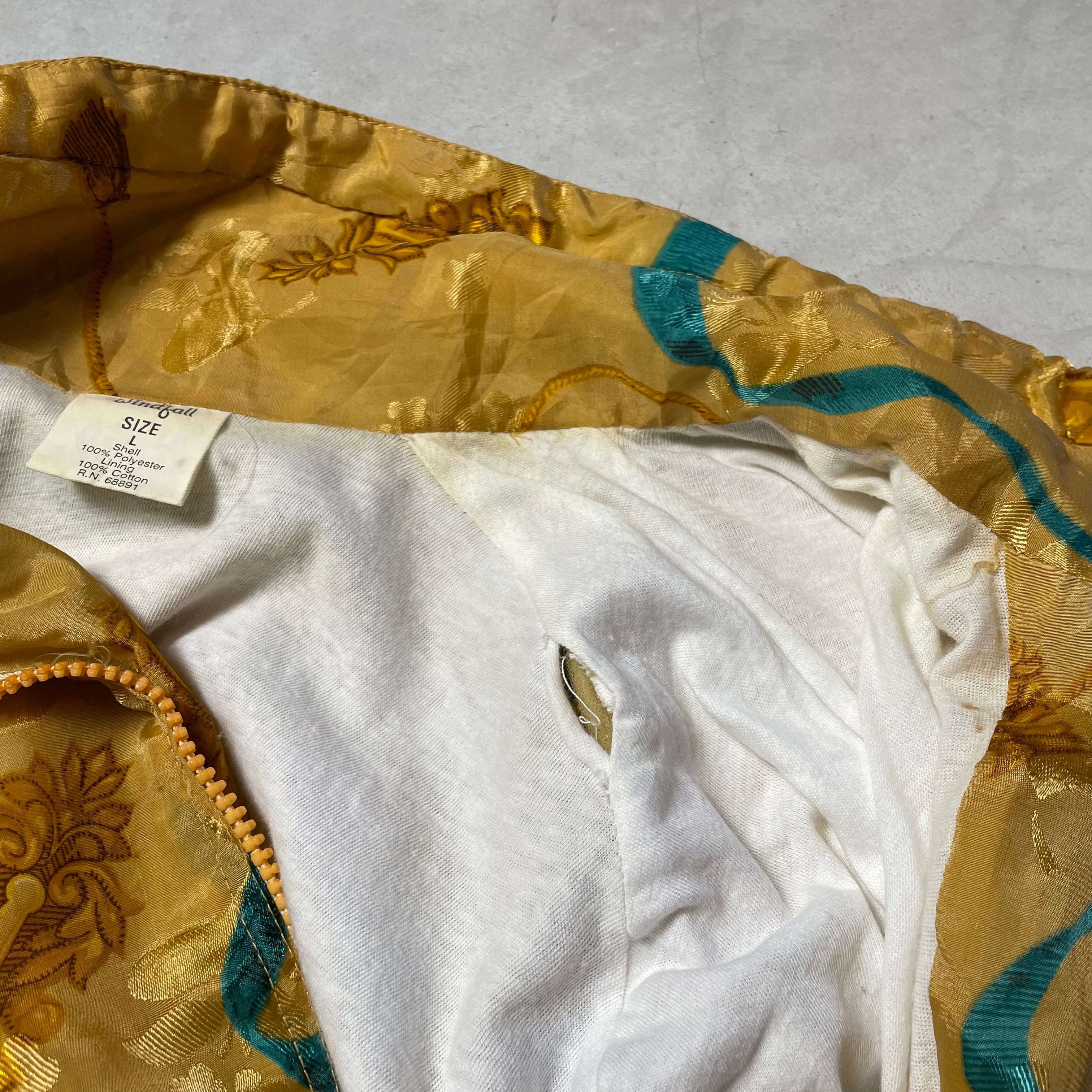 総柄 ポリエステル ジャケット メンズM レディースL相当 古着 黄色【ナイロンジャケット】