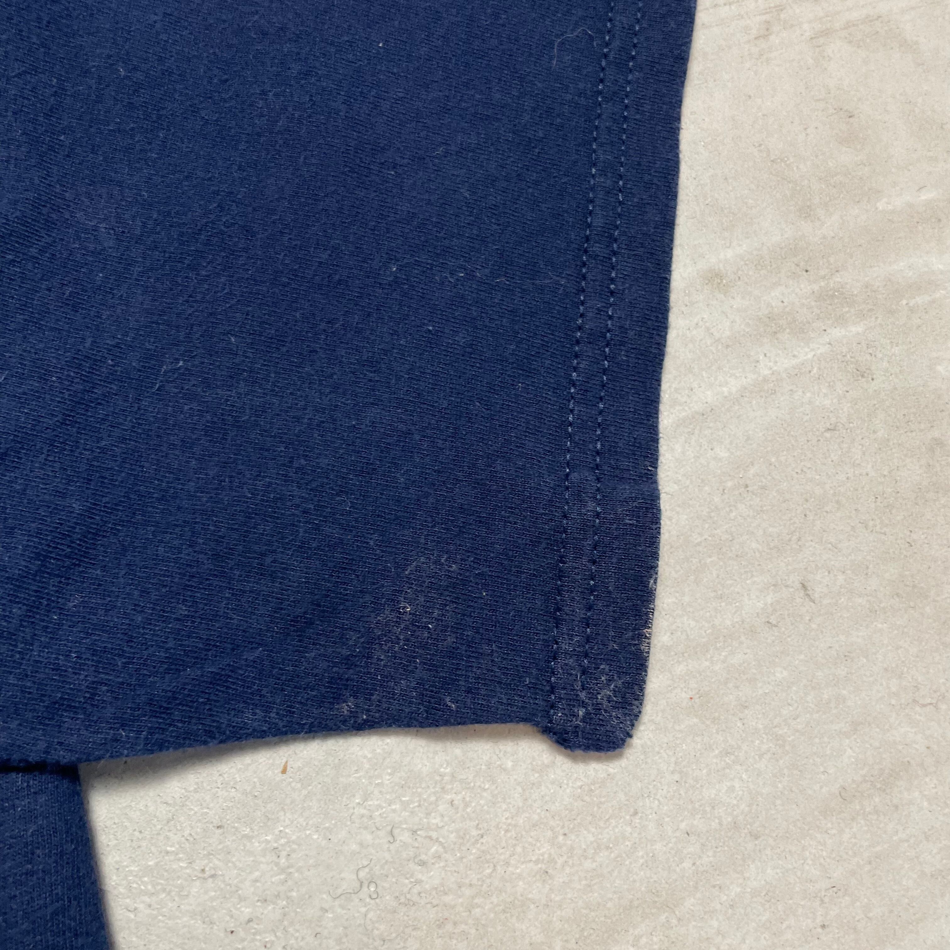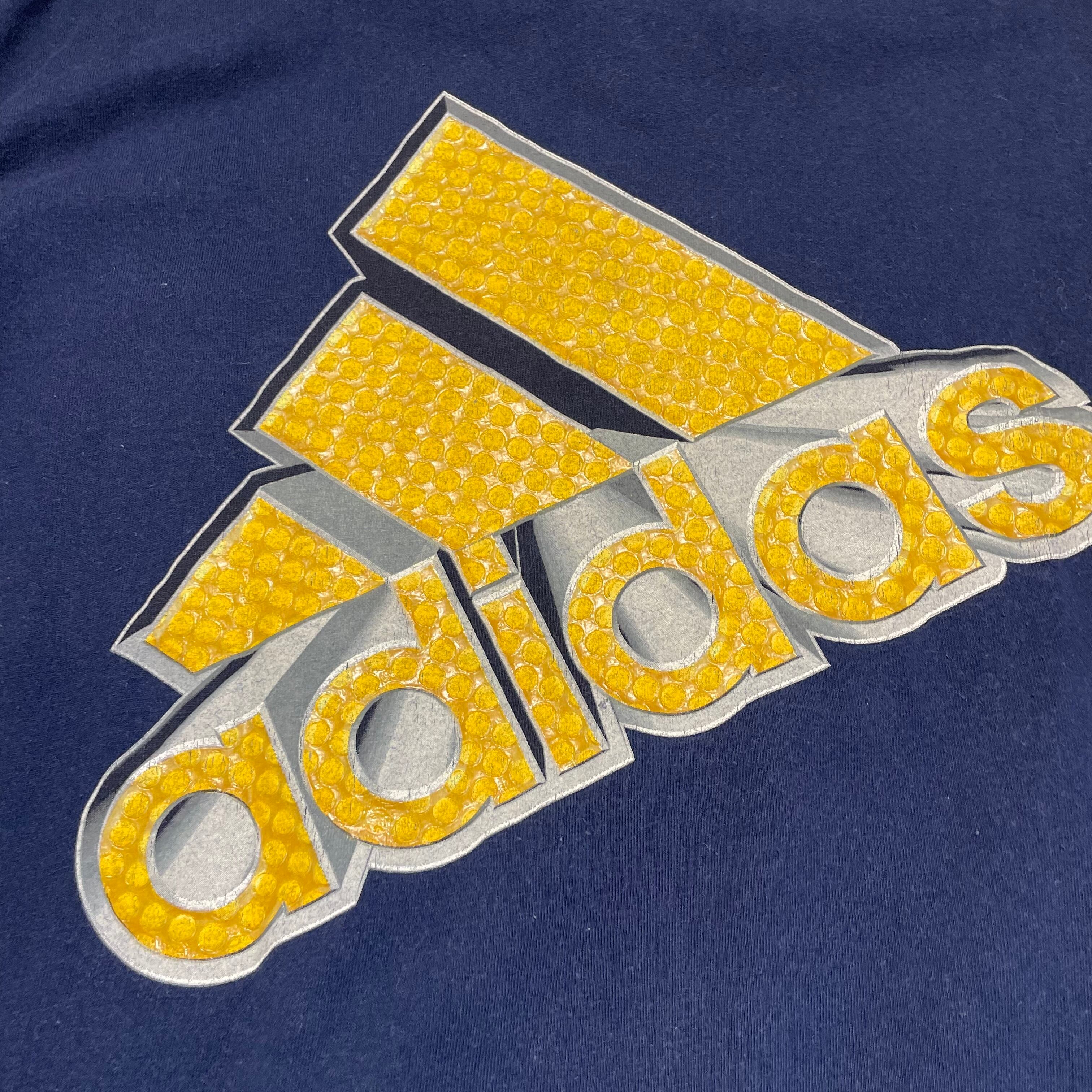 adidas アディダス パフォーマンスロゴ プリントTシャツ メンズXL相当 古着 ネイビー 青色【Tシャツ】
