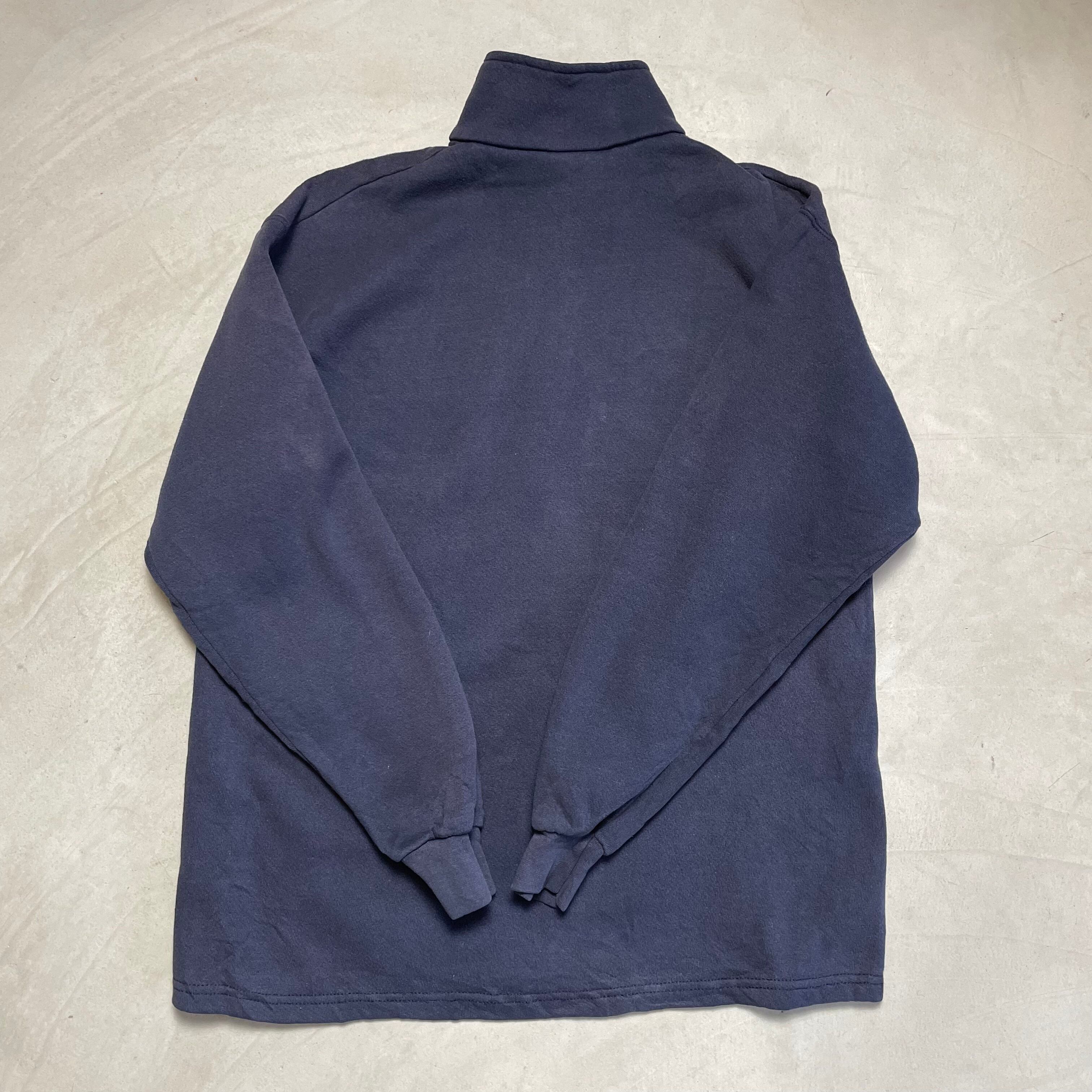 90年代 Lee リー 胸ロゴ プリント ハーフジップ プルオーバー スウェット メンズM相当 古着 プルオーバー トレーナー ネイビー 紺色 90s ヴィンテージ ビンテージ【トレーナー